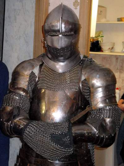 Полный вес порядка 54 кило - это поддоспешник, кольчужный слой и непосредственно сами латы.