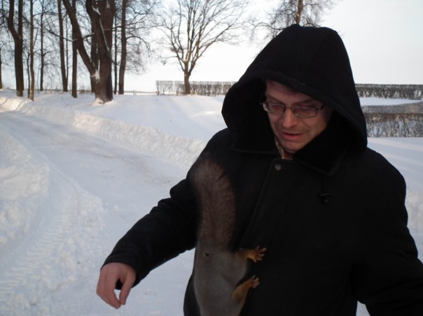 Это точно. Собственно, я просто стоял на дорожке, белка же на меня запрыгнула (видимо, действительно, полагала, что я ее покормлю), посидела пару минут на руке, затем убежала.