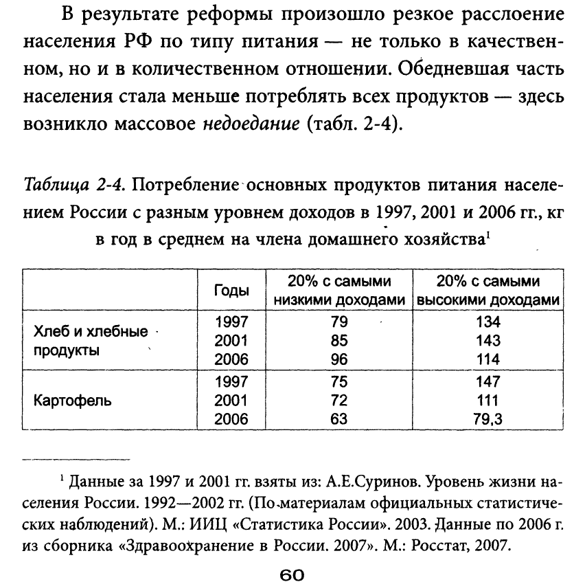 На тему питания в сравнении с дореволюционными временами, плюс после реформ 90-х и сравнение с сопредельными державами. Указ.соч.)