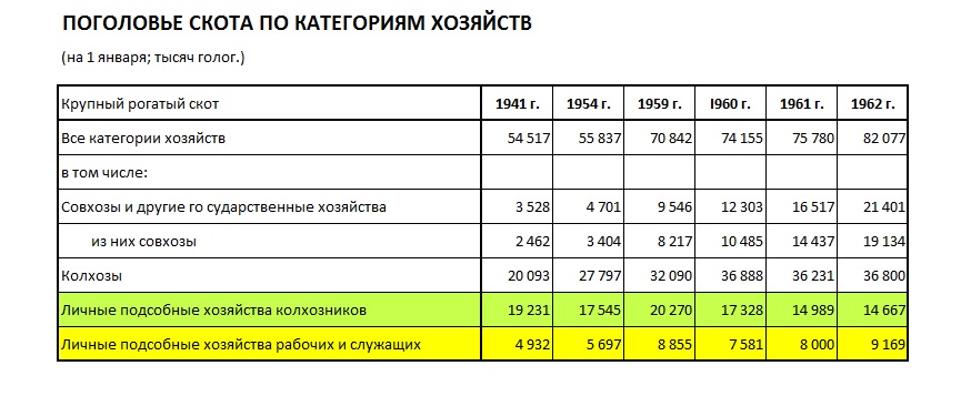 Ведь содержать скот в ЛПХ запрещалось только жителям городов и рабочих посёлков. А ведь рабочие не только в городах живут, может данные из таблицы к ним относятся?
