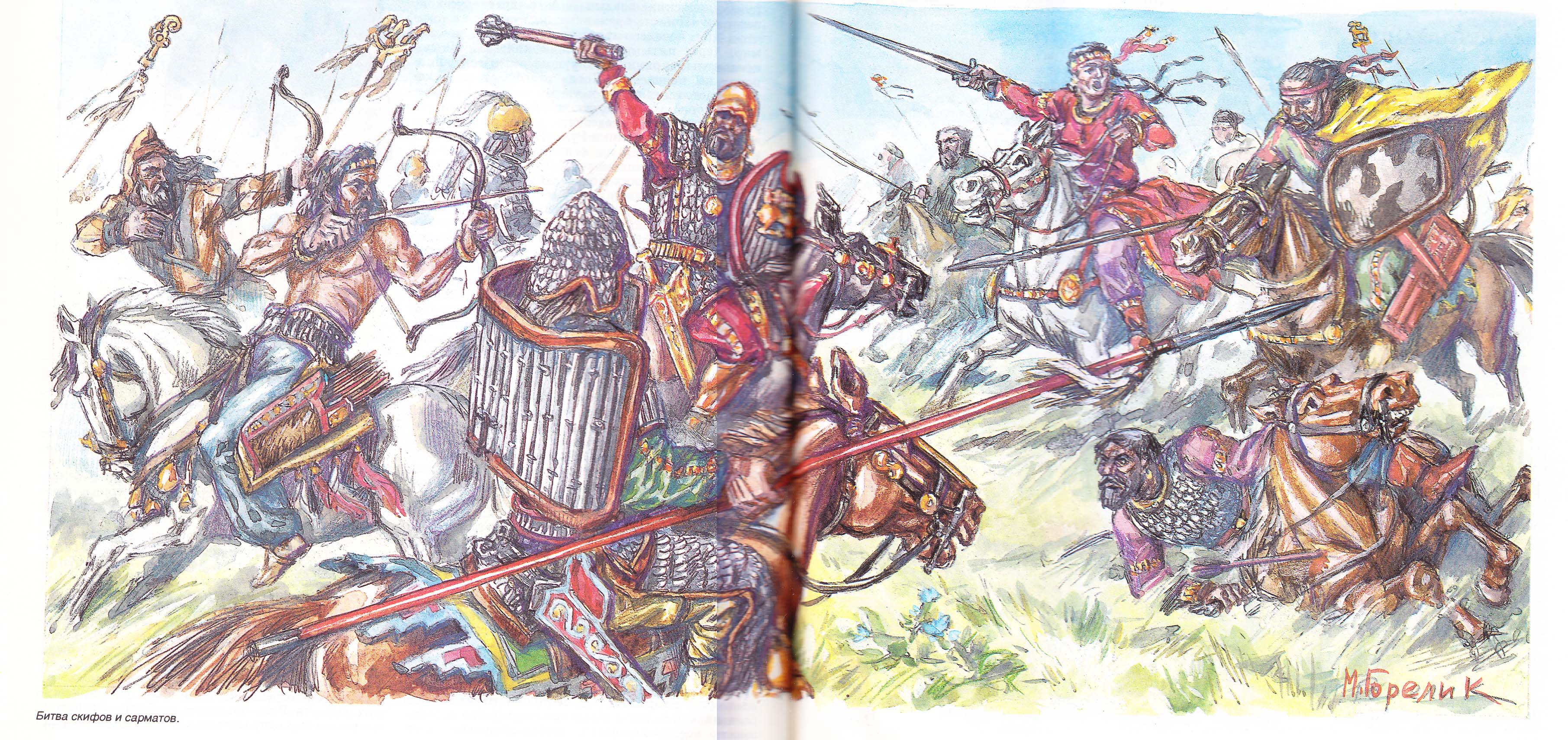 Для цвета, рисунок Горелика - битва скифов и сарматов.
