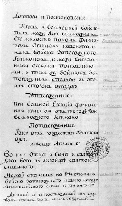 Во-вторых, давайте взглянем на грамматические конструкции «староукраинского» языка, на котором написан сей документ! И выясняется, что (о, ужас для творцов украинского исторического мифа!) этот самый «староукраинский» язык гораздо ближе к современному русскому языку, чем к современному украинскому! И уж фактически совершенно не отличается от канцелярского языка петровских указов, издававшихся «на Московщине» (опять-таки термин из современных украинских учебников). Вы не найдете в «конституции» Орлика ни слов «але», «що», «де», «та», ни употребления буквы «и» вместо «ы» (оказывается, «староукраинский» язык не чурался этой буковки), ни тебе терминов вроде «батькивщина». Да-да, Юлия Владимировна может смело свою партию называть «Отчизной» – «староукраинский» язык позволяет. Предлагаю даже пойти дальше и назвать ее так же, как Филипп Орлик называет свою родину по-«староукраниски»: «Отчизна наша, Малая Россия»! И кстати, апрель по-«староукраински» будет не квітень, а таки апрель! А гетман – таки гетман, а  не гетьман!