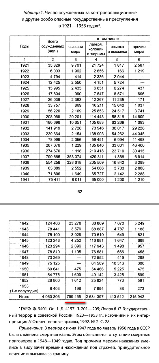 Вот сколько всего к высшей мере, по Земскову за 1921-1953 годы Из книги "Сталин и народ" - 799 455