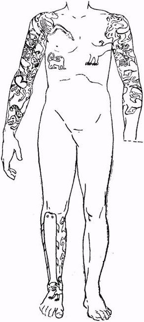 "И от края ногтей" " и до шеи" они имеют татуировки " собрание деревьев, изображений и тому подобное".
